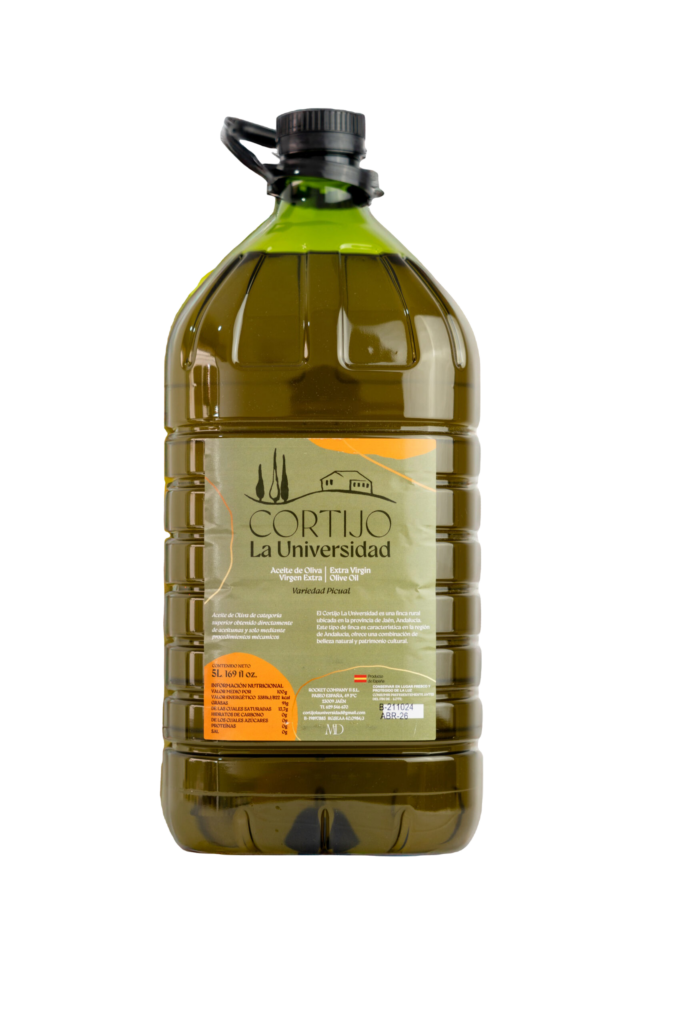 Descubre el sabor único de Cortijo La Universidad con nuestro Aceite de Oliva Virgen Extra, un producto que combina tradición, calidad y sostenibilidad. Cada botella encapsula la riqueza de nuestra tierra, elaborada con prácticas agrícolas respetuosas con el medio ambiente y técnicas innovadoras que garantizan un sabor auténtico. Perfecto para realzar cualquier plato, nuestro aceite destaca por su aroma, pureza y carácter inigualable. Desde 1988, llevamos lo mejor de nuestra región a tu mesa, creando una experiencia gastronómica excepcional. ¡Compra ahora y disfruta de la esencia de la excelencia!